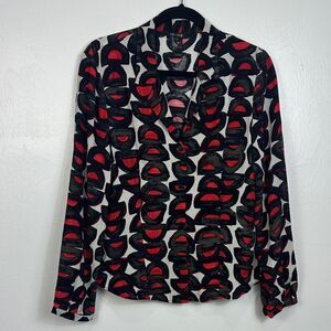 Chic blouse with bold red and black pattern. Long sleeves and stylish design. Perfect for versatile wear