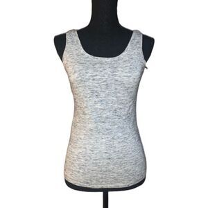 Gray and black marled tank top. Fitted. Stretch fabric. 95% cotton/5% spandex. Size: XS. Preowned in good condition.