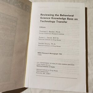 Keywords: NIDA, Research Monograph, Behavioral Science, Technology Transfer, 1995, Drug Abuse, National Institute on Drug Abuse, Science, Technology, Monograph 155, NIDA Research, Health, Public Health