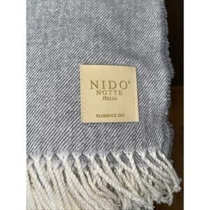 The preowned in great condition NIDO NOTTE Italia Gray/Cream Tassel Scarf Wrap is a luxurious and farmhouse-style addition to any home. Made from a cozy cotton blend, this reversible blanket features a checked pattern in a soothing gray and cream color palette. With dimensions of 54” X 52”, this rectangular throw is perfect for adults to snuggle up with in all seasons. Easy to care for with machine wash instructions, this Italian-made blanket exudes elegance and comfort.