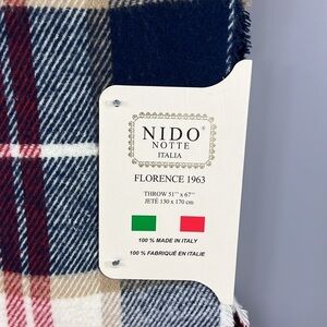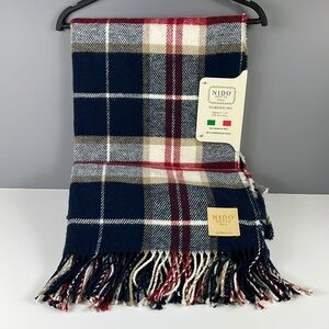NIDO Plaid Throw Blanket with Fringe Made in Italy 51" x 67" Navy Red White NEW
