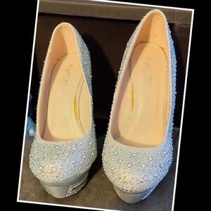 NIGHT MOVES PUMPS 5" HEEL 1.5 PLAT FORM BALL OF FOOT 3".NO SIZE MARKED MEASURES 9" FROM TOE TO HEEL. SPARKLE, DIAMONDS AND RHINESTONE.