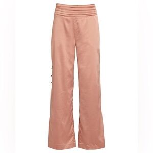 NIGHT NIGHT BY JONATHAN SIMKHAI Satin Wide-Leg Trousers in Rose Beige sz XS. Please note small snags on satin fabric ( see pictures) Peppered with covered buttons, the label's wide-leg trousers fall from a ruched ultra high-waist in fluid dusty rose satin. On-seam pockets. Elasticized back waist. Button-down side seams. Pull-on style.