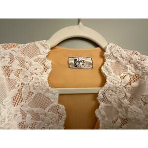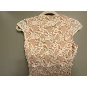 The Nightcap Antoinette Wisteria Lace Sheath Dress with Nude Lining in size 1 XS is a stylish and elegant choice for various occasions such as travel, weddings, parties, and more. Made of delicate lace fabric with a V-neckline and short cap sleeves, this dress features intricate scalloped accents and a fully nude lining for a sophisticated look. With a short dress length and a pullover closure, it is perfect for the summer, fall, and spring seasons, making it a versatile and timeless addition to any woman's wardrobe.
