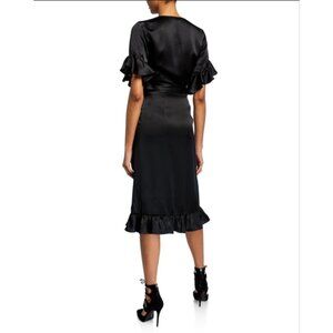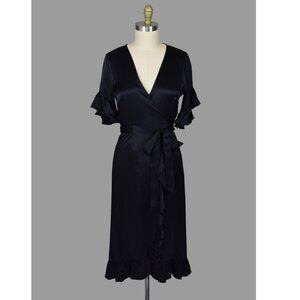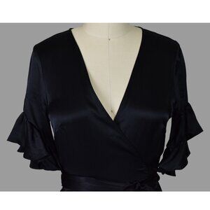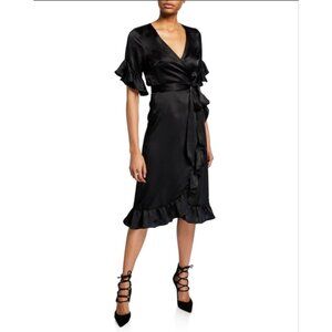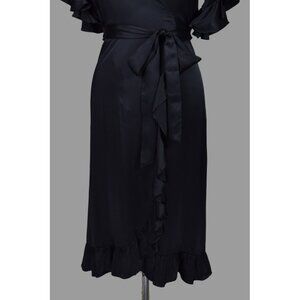 NIGHTCAP CLOTHING 100% SILK RUFFLE WRAP BLACK DRESS