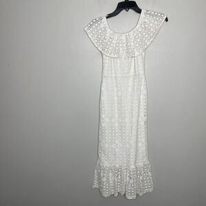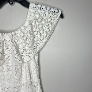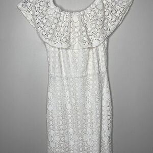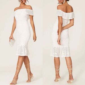 NIGHTCAP Midi Dress Women XS Sunflower Lace Off-Shoulder Sheath Ruffle Stretch