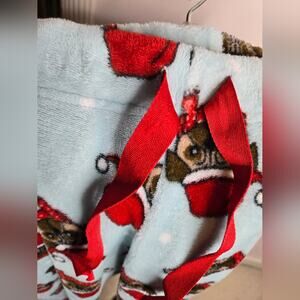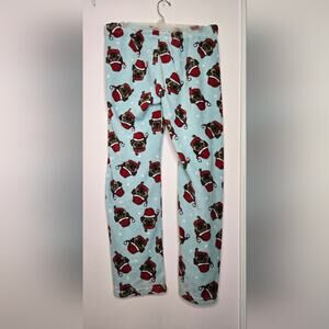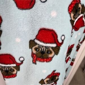 NIGHTFOX Fleece PJ Pants Pug Dogs in Santa Hats Size Medium Light Blue