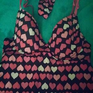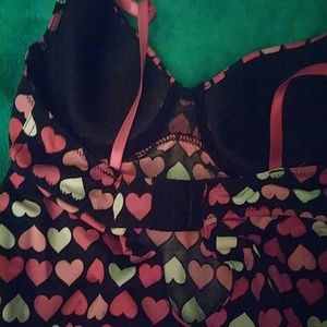 Beautiful NIGHTIE. New/never worn but tags have been removed. Black w/ red & pink hearts. Size Am. Bra type closure in back with slightly padded cups will fit 34A & 34B