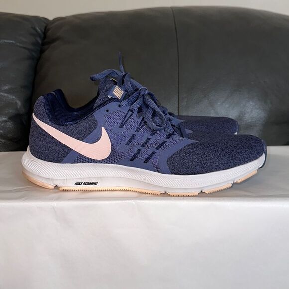 NIKE 9.5 Run Swift Women’s Heather Indigo Blue Knit White Running Sneakers