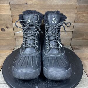 NIKE ACG LUNARSTORM BOOTS Women's Sz 6 Black Leather Faux fur lined