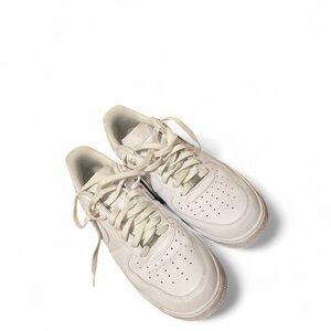 Classic white Nike sneakers. Sleek and stylish design. Perfect for everyday wear.