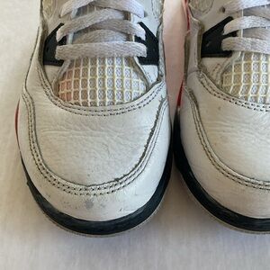 NIKE AIR JORDAN 4 Retro OG Red Cement BQ7669-161 Kid’s Size 12C in good used condition. Minor scuffs on the right toe.