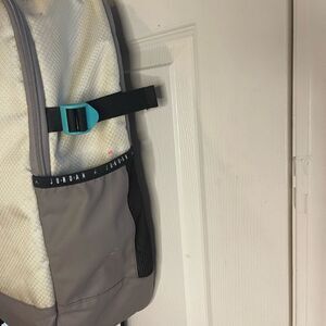 NIKE AIR JORDAN JUMP MAN 15'' INCH LAP TOP POCKET BACK PACK beige &gray polyester t. The backpack features a large size with a 16-inch bag width, 21-inch bag height, and 7-inch bag depth, providing ample space for all your essentials. The backpack comes with a zip closure and a crossbody strap handle style. It also has a laptop sleeve/protection feature, making it ideal for carrying your laptop.Pre owned in good used condition small wear marks on the fabric the double top zipper one is missing the handle strap no tear see all pictures any questions please message.