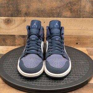 The product you are purchasing is a pair of NIKE AIR JORDAN 1 MID OBSIDIAN SANDED PURPLE mens shoes in a size 9. These shoes are in good condition w/ a few signs of wear. They have a Classic Jordan Retro 1 shoe design with the Obsidian Sanded Purple colorway and the heel/sole is in good condition with lots of life left In them.