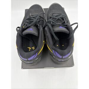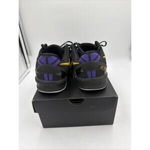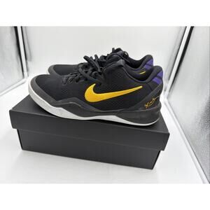 The NIKE AIR KOBE 8 (GS) "LAKERS AWAY" 2024 in size 7Y/ 8.5W (UK 6) is a stylish sneaker featuring a round toe shape, lace-up closure, and moderate cushioning level. This athletic shoe from Nike's Kobe product line is designed for various occasions including travel, activewear, formal events, and casual wear. With a black color and Kobe logo accents, this sneaker is perfect for young fans of the legendary basketball player. The rubber outsole provides traction, while the foam insole ensures comfort and support for a range of activities such as basketball, cross-training, and cycling.
