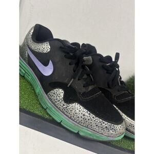 NIKE AIR LUNAR SAFARI FUSE + BLACK PURPLE GREEN SILVER ATMOS 525059-073 Sz 14