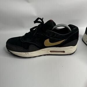 NIKE AIR MAX 1 PREMIUM #512033-076 MEN'S SIZE 9.5 BLACK METALLIC GOLD.