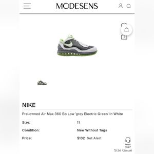 Pre-owned Nike Air Max 360 Bb Low 'grey Electric Green' In White size 11 , basketball/gym casual sneaker. Gently used in great condition only worn for walking around a couple of times, tons of life left check pictures. These are a classic shoe that will never go out of style, you can wear these with anything. Very comfortable cool color way, they also come with a brand new pair of shoe laces including the original, listed on Goat and other sites for over 125. These are Authentic just cleaning house get this deal while you can. Rare color way