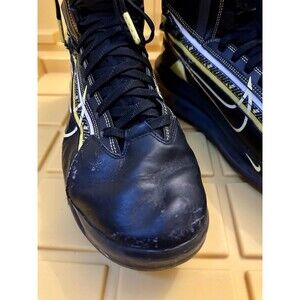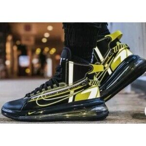 The Nike Air Max 720 Saturn AS QS Motorsport BV7786-001 is a men's sneaker in black, size 12. Released in 2019 as part of the Nike Air Max product line, this athletic shoe features a futuristic design with the signature Air Max cushioning for all-day comfort and support. Beautiful shoes but damaged. Left shoe rear air is popped. Not visually noticeable but can be felt when walking. Not bad with a cushion insert. It is also missing a snap on one shoe.