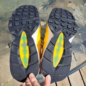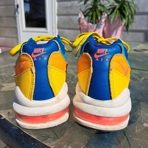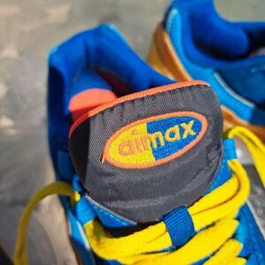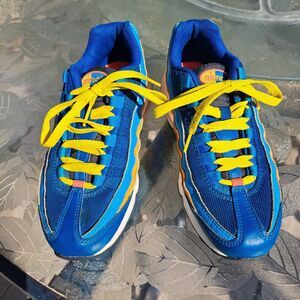 NIKE AIR MAX 95 GS SNEAKERS WOMENS SIZE 5.5 Y FLASH CRIMSON LAGOON 90'S MASHUP, NO VISIBLE FLAWS, GENTLY WORN, SEE PICS FOR DETAILS, THESE ARE BRIGHT, AWESOMELY COLORFUL SHOES, ALSO VERY COMFORTABLE, EUC.