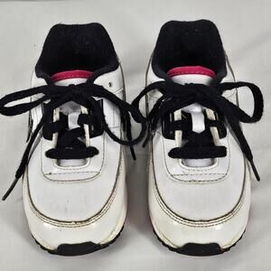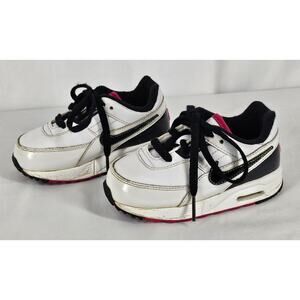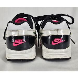 Step back into 2009 with these Nike Air Max Girls Patent Leather Sneakers, a stylish and rare find! Featuring a sleek black, white, and pink design, these shoes boast classic Air Max cushioning for all-day comfort and support. The patent leather finish adds a bold and sophisticated touch, making them perfect for active kids who want both durability and style.