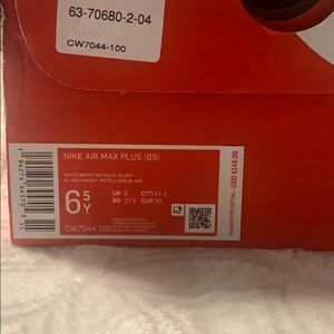 NIKE AIR MAX PLUS GRADE SCHOOL 6.5Y white