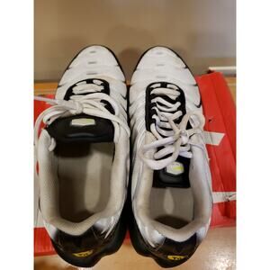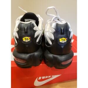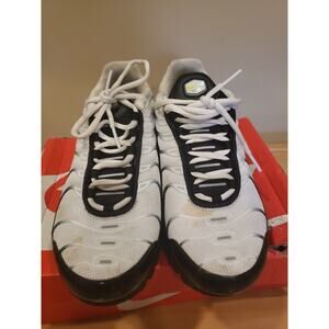 NIKE AIR MAX TN BLACK & WHITE SNEAKER YOUTH SIZE 7Y BV0047-100. Preowned condition, has some markings and will need to be cleaned to your preference. See photos for condition and visual description. Comes with a nike box, but it is not the original and has some damage. Will come as is as shown. If you have any questions please ask 😊