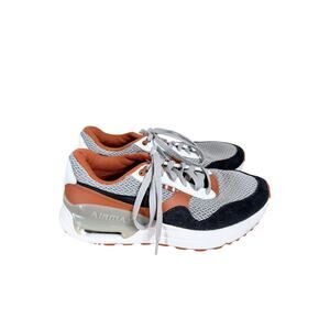 Description: Elevate your sneaker game with the Nike Air Max SYSTM Texas Longhorns DZ7745-001 Running Shoe Sneaker. This limited edition shoe features a colorblock pattern in Pewter Grey/Desert Orange/White/Black and a low top shoe shaft style. The shoe is made with fabric upper material and is cushioned for comfort during walking, school, running and jogging.