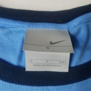 🌞NWOT NIKE ATHLETIC WOMENS TEE. BLUE WITH BLACK & WHITE TRIM. NIKE IN BLACK VELVET. NEVER WORN. WOMENS CUT. SMALL PETITE. LENGTH APPROX 21" SEE PICS FOR ADDITIONAL DETAILS.