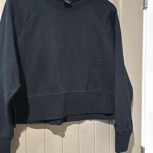 Nike Air Crop Sweatshirt, Size Medium. Large embossed spell-out. Long Sleeve, solid Black. Poly/cotton blend. Crewneck, pullover style. EUC.