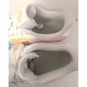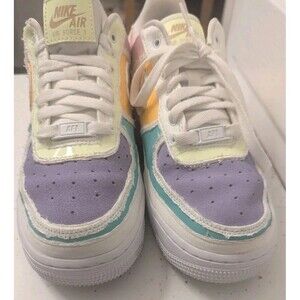 The NIKE Air Force 1 Low Tear Away Pastel Reveal Sneakers in women's size 7.5 are a stylish and trendy choice for athletic wear. These low-top sneakers feature a striking tear-away pastel reveal design that adds a fun and unique touch to your outfit. With a classic white color and the iconic Nike Air Force 1 model, these sneakers are perfect for women who want to make a statement with their footwear. Step out in style and comfort with these fashionable sneakers from Nike.
