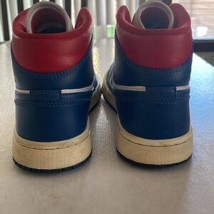 NIKE Air Jordan 1 Mid BQ6472-146 Women’s Basketball Shoes Size 7.5 in excellent used condition. No rips or tears just showing minor dirt stains mostly on the white soles. Some crease lines on the white toes from normal use.