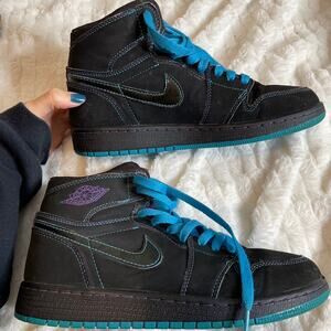 NIKE Air Jordan 1 One Retro High GS Black Orion Blue Purple Lace Up Sneakers 6