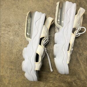 These Nike white sandals boast a strappy design with a lace-up closure, ensuring a secure and comfortable fit. The open-toe construction and multiple cutouts provide excellent ventilation, making them ideal for casual outings. Crafted with a matte finish, these sandals are designed for both style and comfort.