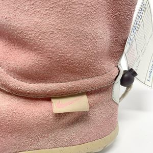 NIKE Air Zoom Pegasus Leather Chukka Boots. Pink cowhide leather with a faux fur lining. Pull on. Drawstring to tighten