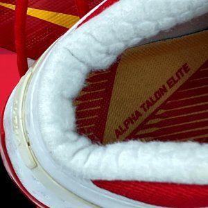 NIKE Alpha Talon Elite 3/4 Mid TD White Red Football Cleats Men's S:15 Pre-Owned - Used - Not in original Box - No Tags - Color: WHITE / RED, Style # 512482 - 160 - The Nike Alpha Talon Elite: Superior comfort and traction - Made with Hyperfuse construction and a full-length Phylon midsole, the Nike Alpha Talon Elite 3/4 Men's Football Cleat offers premium cushioning in a tough and lightweight design. Strategic venting in the upper offers breathability while on-demand cleats provide extra traction for making quick cuts. Hyperfuse construction upper for a lightweight, breathable and durable shoe - Full-length Phylon midsole for lightweight cushioning - Pebax plate with a 12-cleat configuration for lightweight, durable traction - Strategic ventilation throughout upper for enhanced breathability - Full inner sleeve and Nike Pro Combat foam in collar for a comfortable fit and support - Carbon-fiber midfoot shank for lightweight support - Three supplemental on-demand TPU cleats in forefoot for enhanced traction and quick cuts. Thank you for looking, Have a Groovy Day & Enjoy!