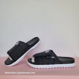 BRAND NEW WITH BOX. Black/White color. A sporty quilted upper slide sandals for easy on/off with an adjustable lacing design. Features a quilted padded upper for comfortable wear. Crafted of soft synthetic materials and a cradle-shaped midsole for comfort.
