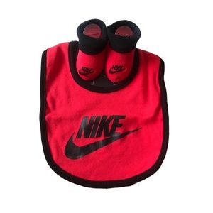 Coming into the world with major swag! Pictured is a Nike baby booties and bib set! Red/black