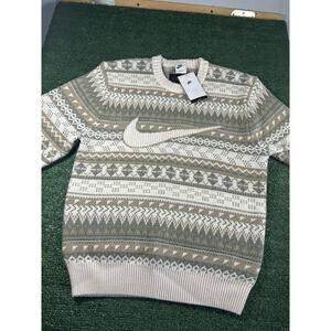 NIKE CABLE KNIT CREWNECK SWEATER MEN’S XS BEIGE LOOSE FIT