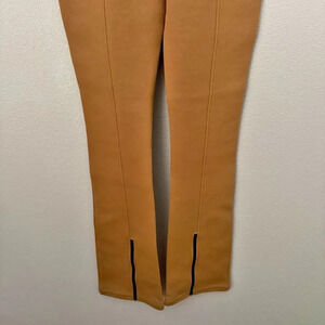 Great pair of flare / boot cut sweatpants trousers from NIKE! Size small, worn once. Color is a stunning caramel tan color. Small snag near waist on side. Black logo on hip. Zippers on ankles.