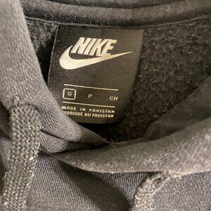 The pullover design includes a hood with drawstrings, a front pouch pocket, and the signature Nike Swoosh logo embroidered on the left chest.