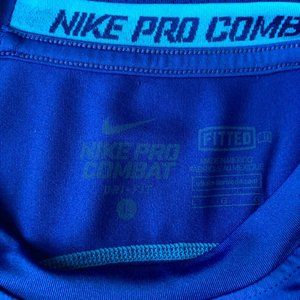NIKE Combat Pro Dri Fit Turquoise Royal Blue Workout Exercise Top