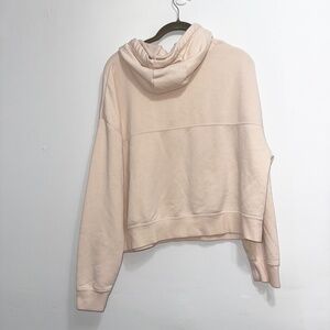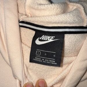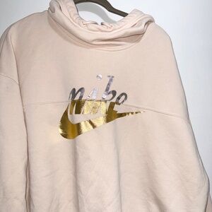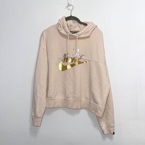 NIKE Cropped Hoodie Beige Metallic Gold Swoosh Logo Pullover Large