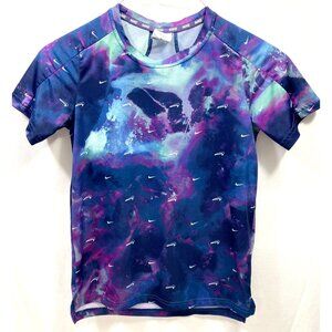 NIKE DRI-FIT Boys Blue Purple Green Logo Swoosh Short Sleeve T-Shirt Size M