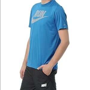 NIKE DRI-FIT Run Legend Swoosh Blue & Silver Logo Graphic Tee