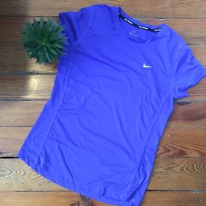 This dri fit NIKE top is ready for your next outdoor activity. Amazing color and flattering design. Awesome blue. Stay looking sharp on your next adventure or sporting event. Only worn once.
