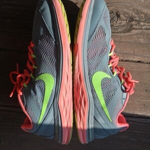 NIKE DUAL FUSION RUN 3 WOMENS RUNNING SHOES SIZE 11 GRAY NEON ORANGE 653594 400.A17pem