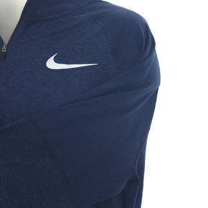 NIKE Dri Fit Mens XL 1/4 Zip Loose Running L/S Shirt Dark Blue Reflective Stripe