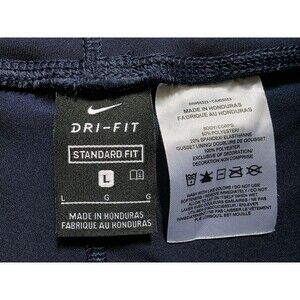 Elevate your workout wardrobe with these versatile Nike Dri-Fit shorts, designed to keep you comfortable and stylish during any activity. The dark blue hue is a timeless shade that pairs effortlessly with your favorite athletic tops, while the size large ensures a snug yet comfortable fit for a wide range of body types. The blended fabric construction provides the perfect balance of stretch and support, allowing for freedom of movement whether you're hitting the gym or the track.