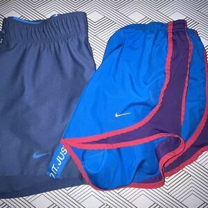 Upgrade your activewear collection with this lot of two Nike Dri Fit Women's Shorts in size small. These shorts are perfect for gym & training, cross training, basketball, running & jogging, and any other sports activity. The blue shorts come with a fold-over waistband and the other blue pair is lined.